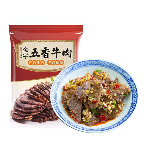 可进行花样美食搭配的卤牛肉,甄选健康放心的黄牛肉,融合植物香料调味,烹饪出浓厚好味道,香气饱满馥郁,闻着特别有食欲。