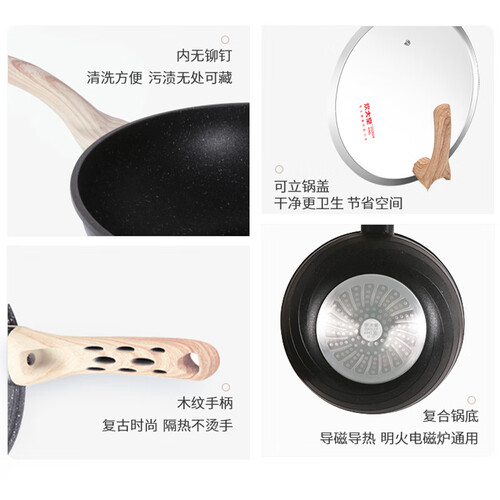 轻巧的锅身内外麦饭石色涂层,轻松驾驭各种食材不粘好清洗;加厚复合锅底不挑炉灶,可立式锅盖节省台面空间。