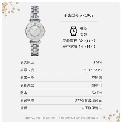 阿玛尼的这款欧美表,30米生活防水,日常防水溅,洗手时无需摘下,让您佩戴更方便舒心。