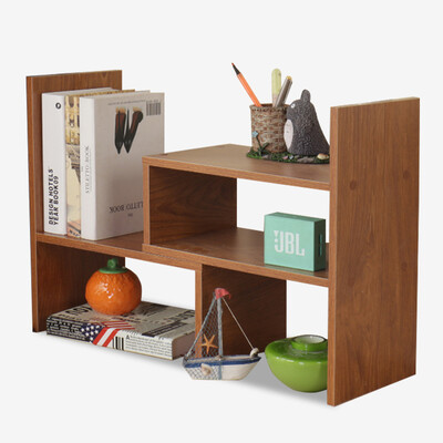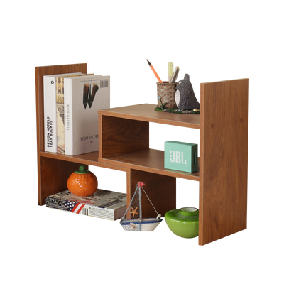 竹艺佳 双抽屉伸缩桌面收纳书架