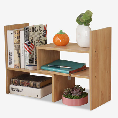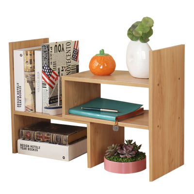 竹艺佳 双抽屉伸缩桌面收纳书架