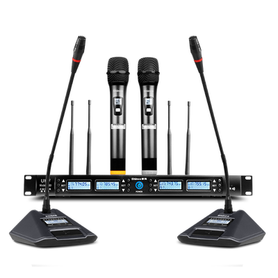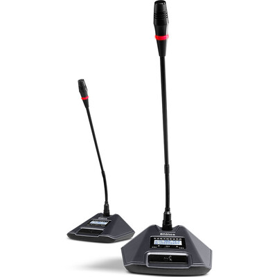 采用一拖四鹅颈麦版设计,心型拾音模式更好聚音,提供高保真音质。360°可调节鹅颈麦,灵活设计,咪杆灯环指示灯亮为发言。