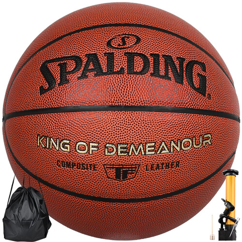 篮球采用黑色勾筋设计,压痕清晰,并且球面带有颗粒很好掌控;内胆采用丁基橡胶材质,球体压力稳定,不易漏气。