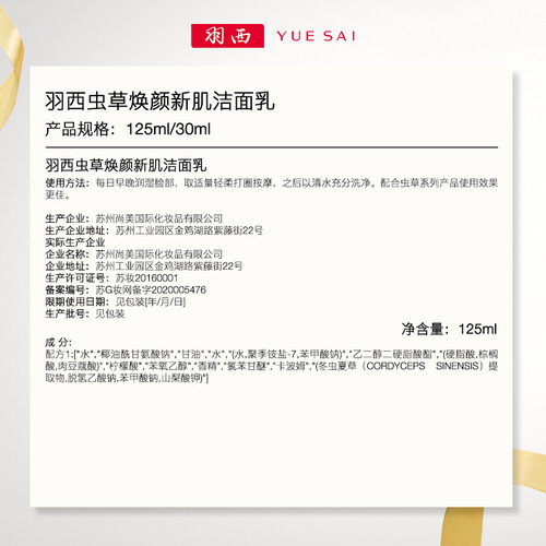 萃取珍贵的虫草精华成分,可给肌肤带来多项修复,改善肌肤细纹。在温和清洁的同时,让肌肤变得更加有弹性。