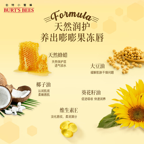 萃取天然蜂蜡精华,舒缓干燥双唇,柔软滋润、淡化唇纹,保持双唇健康柔嫩。天然的蜂蜜味,滋润呵护的同时,安全绿色使用更放心。