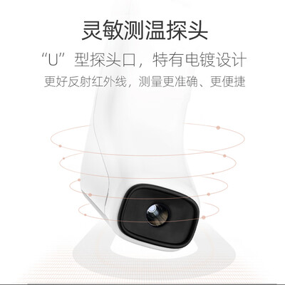 无接触,防止交叉感染,优质芯片,红外感应核心算法,让测量结果更准确,U型探头口,更好反射红外线。