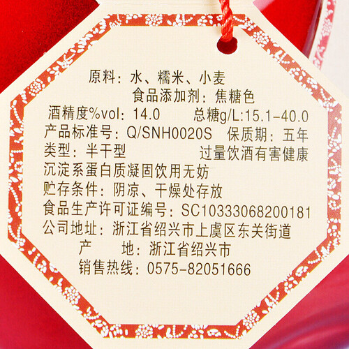 女兒红 半干型绍兴黄酒