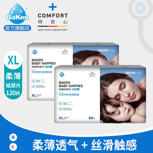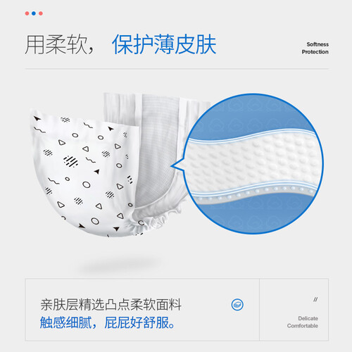 倍康柔薄纸尿片,轻薄设计,双层防漏,亲肤层精选凸点柔软面层,触感细腻,瞬间导流芯体,坚韧不断层,活动自如