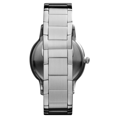 阿玛尼时尚石英手表,石英机芯更耐用,银灰色钢制表带,与黑色表盘的颜色搭配非常具有成熟男人的时尚魅力。