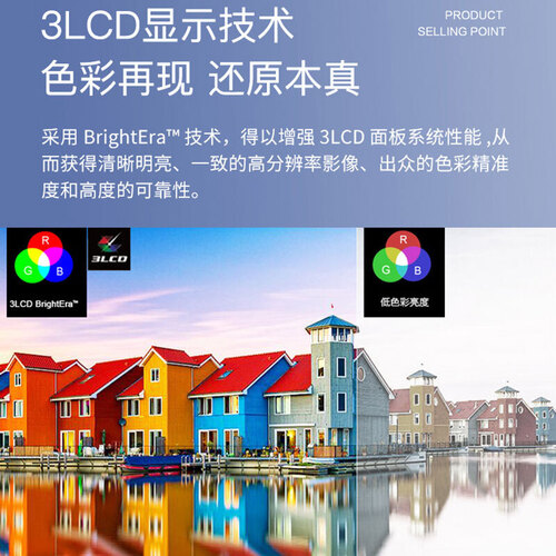 选用3LCD面板,可提供高分辨率和高亮度,加上12000:1的对比度,呈现更清晰出色的画面,白天直投也不怕。