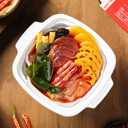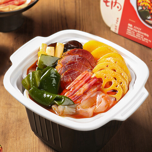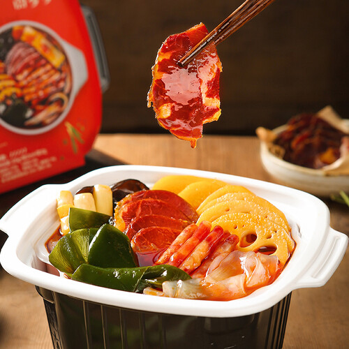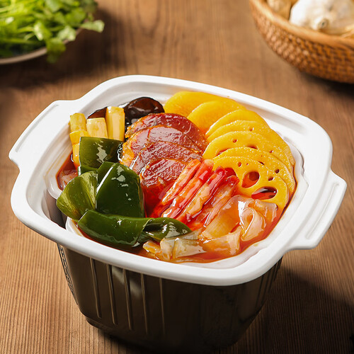 这款麻辣随身锅菜料丰富,只需加杯水,即可迅速加热,烫熟食材,简单方便,当做夜宵或下饭都很不错。