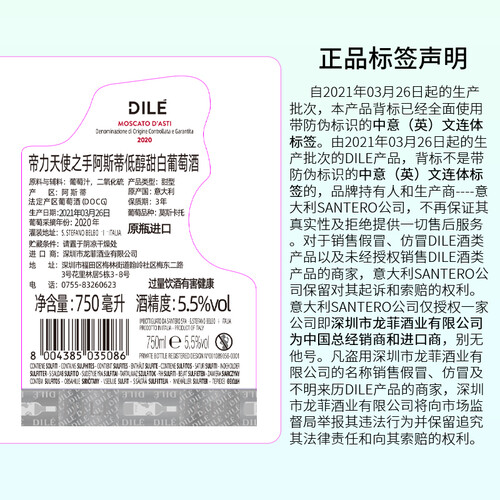 阿斯蒂 清甜气泡 白葡萄酒