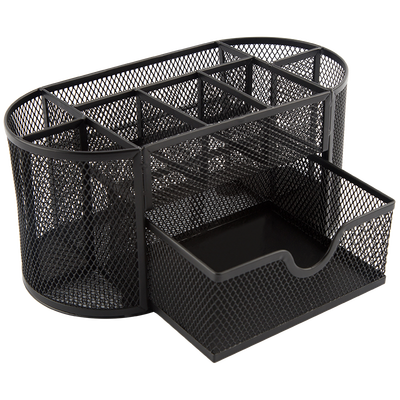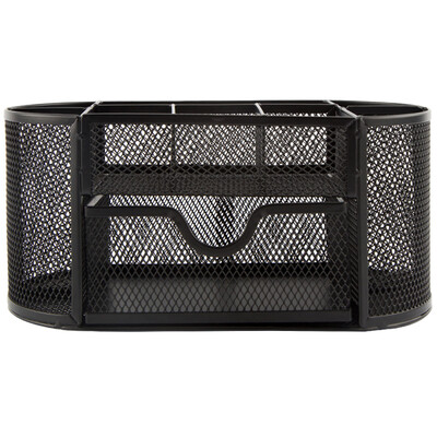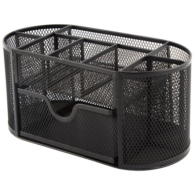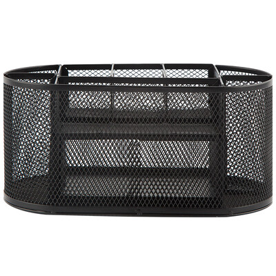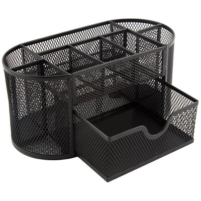 采用金属材质,笔筒更加结实。搭配镂空铁网的设计,能够清楚看到所放置的物品,方便拿取。四只垫脚的设计,让置放更稳定。