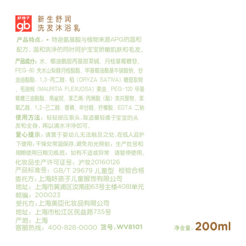 好孩子 新生舒润洗发沐浴露