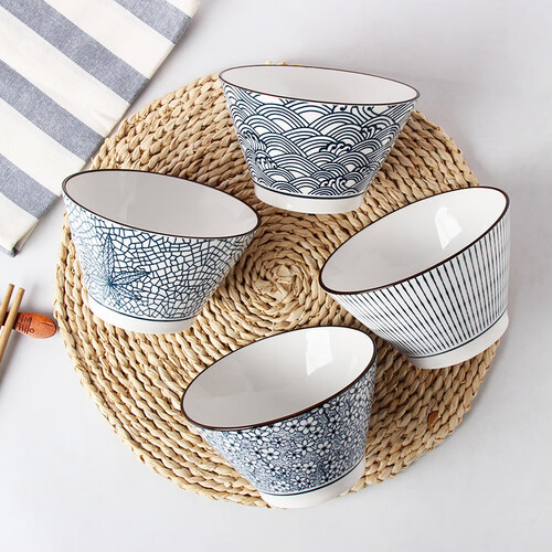 竹木本记 日式釉下彩面碗