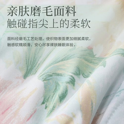 花色清新淡雅,如沐春风;聚酯纤维填充,蓬松回弹,舒爽贴合身体;加上绗缝工艺,使填充不易板结、泡棉。