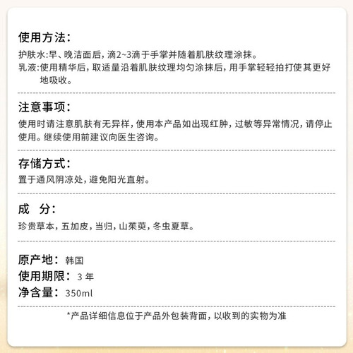 富含鹿茸、当归、冬虫夏草等名贵草本植物成分,滋养效果好,有助于补水保湿。成分温和,使用无刺激,适用于任何肤质。