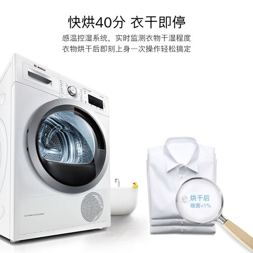 采用温湿度双重感应系统,能够感知温度湿度,智能烘干不伤衣。高精度感温控湿系统,实时监测实现衣干即停。
