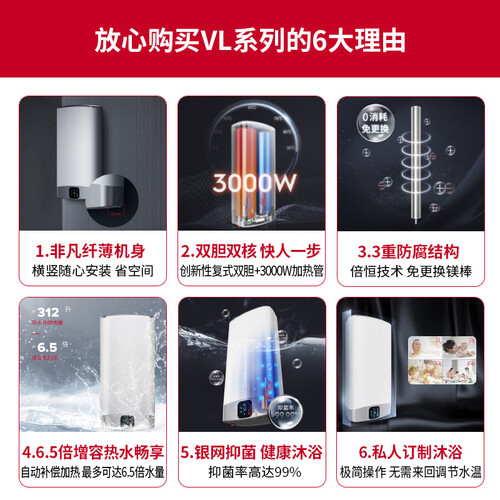 采用增容技术,可提供更多热水,带来舒适的沐浴体验。LED大屏设计,自己设定洗澡人数,多种模式可选,使用贴心。