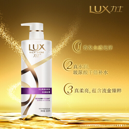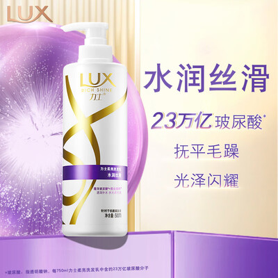 添加护肤级玻尿酸成分,为干燥的头发补水,使秀发如真丝般的柔顺。全新亮泽配方,使秀发提升30%的光泽度。