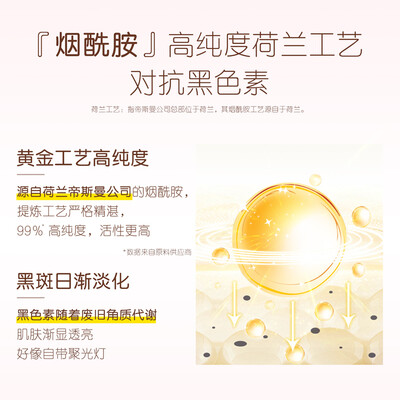 肤色暗沉,容易让人显色憔悴。这款套装含有烟酰胺成分,能欧渗透肌底淡化肌肤黄气和黑色素,自然美白。水感保湿,带来水嫩美肌。