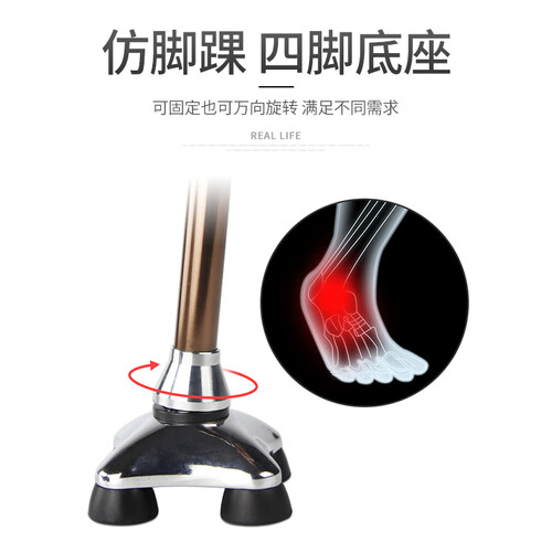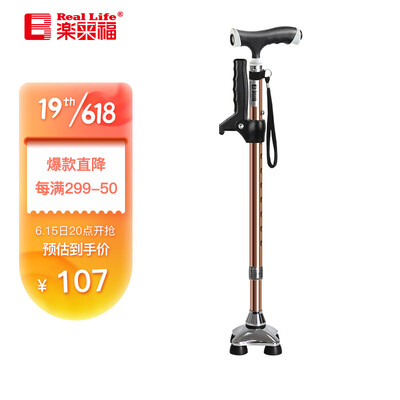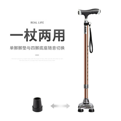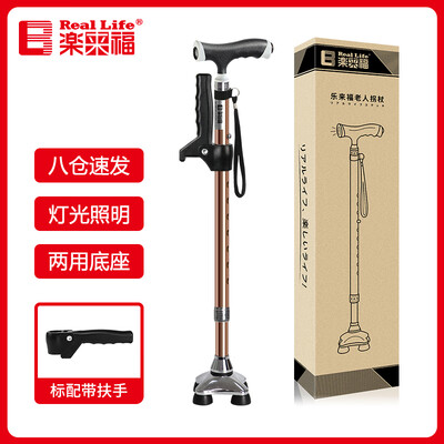 乐来福 带灯伸缩四脚拐杖
