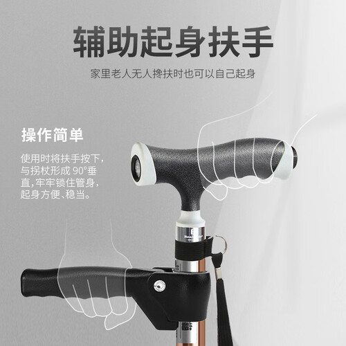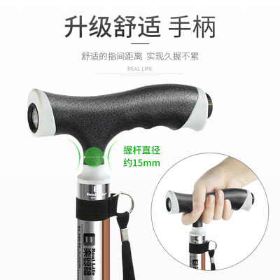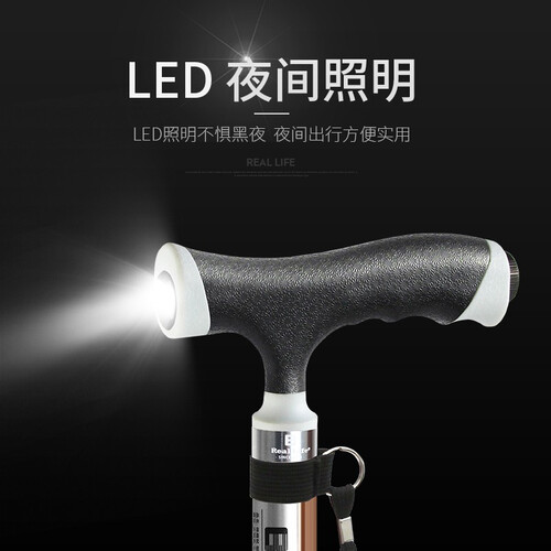 拐杖加载LED照明功能,光线明亮柔和,傍晚出行更安全便捷。优选铝合金材质打造杖身,硬度较高,质地轻盈,经久耐用。