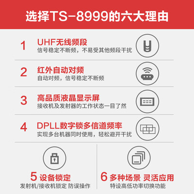 动圈式设计,心型指向,音质清晰,还原声音本色,特设灵敏度调节,抗干扰,有效增大接收距离。高档液晶显示屏,一目了然。