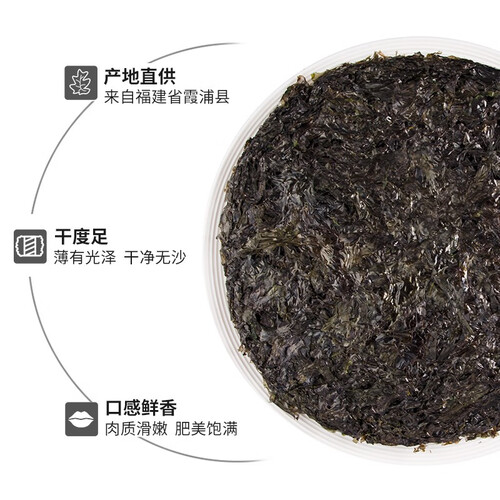 纯净海域生长的紫菜,含有丰富的蛋白质、膳食纤维、多种维生素以及藻类所拥有的藻胆蛋白,是来自大海的美味。