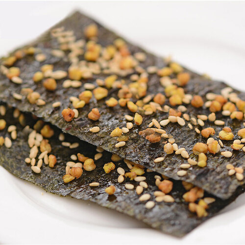 甄选优质紫菜与荞麦,结合饱满白芝麻,带来丰富的口感层次。色泽呈自然的墨绿色,不含色素与防腐剂,食用安全放心。