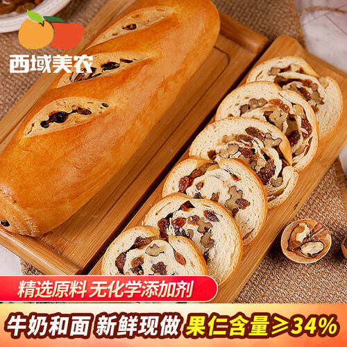 这款面包和面只用鸡蛋和牛奶,不含一滴水,口感松软,奶香浓郁,里面还添加了葡萄干,口感丰富。