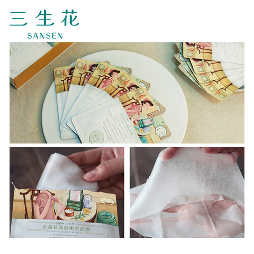 由天然的金盏花为主要成分,为皮肤提供源源不断的能量,细润肌肤。贴合面部轮廓的膜布,轻薄柔软,深层补水。