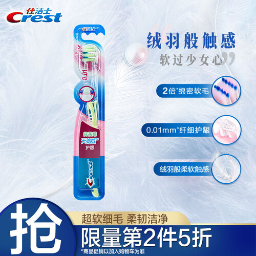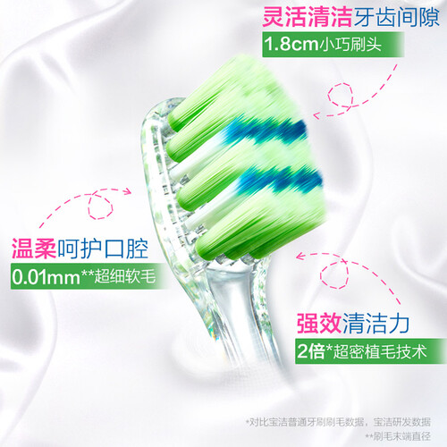 纤细柔韧软毛呵护牙龈,触感如绒羽般柔软,2倍超密植毛技术清洁力强劲,快速带走牙渍减少牙龈问题,舒适洁牙敏齿人群可常备。