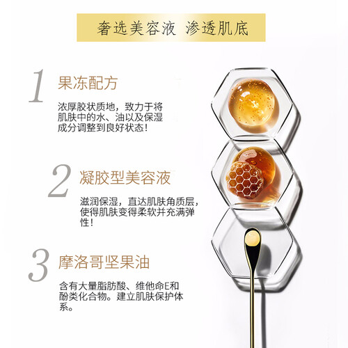 主要核心成分有蜂皇浆精粹,蕴含丰富营养,提供充足水分,可增强肌肤胶原蛋白再生。立体裁剪工艺,很好的贴合脸部肌肤。