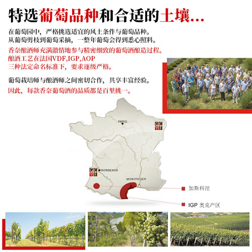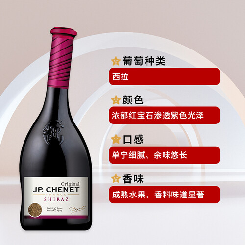 采用异形酒瓶设计,别具特色,散发法式优雅风情。西拉干红风味,带来柔和清新口感,芬芳浓郁。
