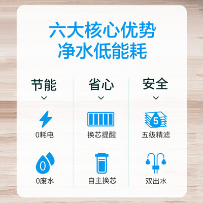 搭载五级精滤系统,可有效降低原水浊度色度,并去除有害物质。三重密封防护的设计,密封性好不易漏水。