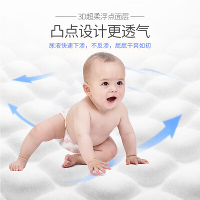 一朵薄示纸尿裤,浮点凹槽面层,快速导流吸收,干爽舒适,轻松玩耍,双层双侧漏边,超柔热风底膜,自封袋设计,易撕拉开口