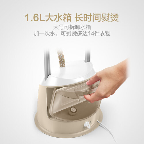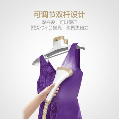 这款蒸汽挂烫机采用可伸缩的双杆设计,有效固定,避免摇晃,轻松节省收纳空间。多档蒸汽档位,轻松选择。