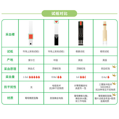 只需要0.4微升血样,无需多次采血,避免测量的恐惧。可侧边采血,测量简单方便,可单独完成,老人家也能轻松在家测量。