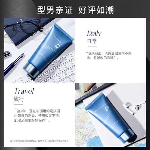 高夫洗面乳专为男性肌肤设计,出泡率高,清洁力满满,其中含有多重养肤天然精粹,是男士变身水润型男的秘密。