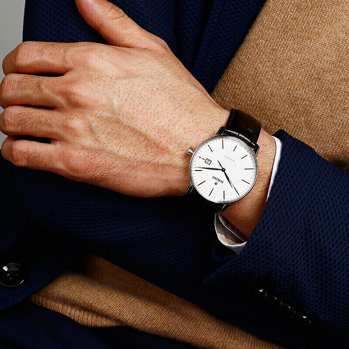 大开面表盘结合日历显示,日常观时清晰明了。圆形表盘线条流畅,可以展现出魅力。表扣贴合手腕线条,佩戴亲肤舒适。
