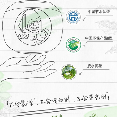 采用安全配方,不添加有害化学成分,亲肤舒适肌肤不受刺激。结合植物基小分子成分,深层瓦解污渍,白衣更洁白。