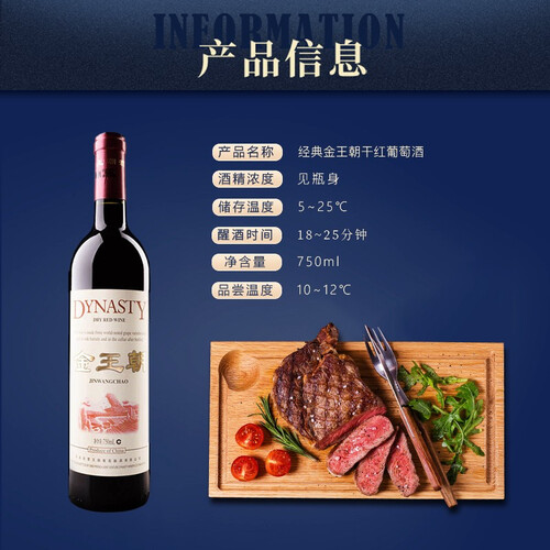 舒顺爽净丨这款王朝出品的金王朝干红葡萄酒其酒香浓郁而优雅,舒顺爽净的口感适合搭配海鲜河鲜等一起享用,能最大限度的丰富食物的口感。