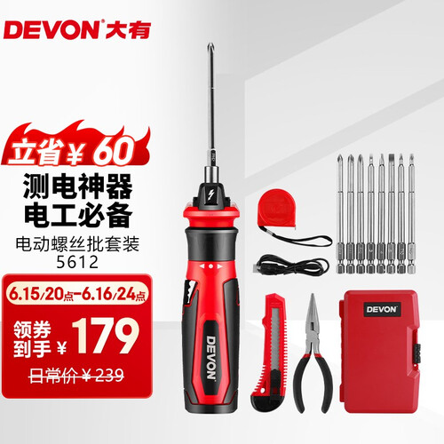 大有的这款电动工具箱,采用加磁设计,批头不易脱落,5.5mm头部直径,在狭窄空间也能使用。
