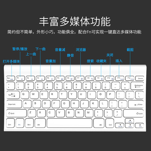 采用金属背板,纤薄体轻而且强韧耐磨,采用智能无线蓝牙连接方式,即插即用操作简单,丰富的多媒体功能,办公娱乐两不误。