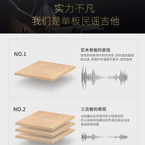 面板采用单板设计,音色纯净无杂音,让您告别传统合板面板闷音的困扰。面板严选优质云杉木,敏感度高,拥有层次分明的色阶。