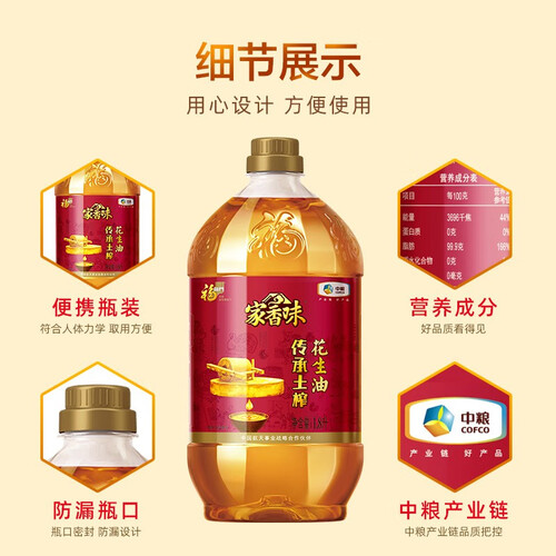 选用山东当季的大花生,颗粒饱满,蕴含了丰富的营养物质。采用了传统土榨工艺进行加工,让花生油的香味浓郁持久。