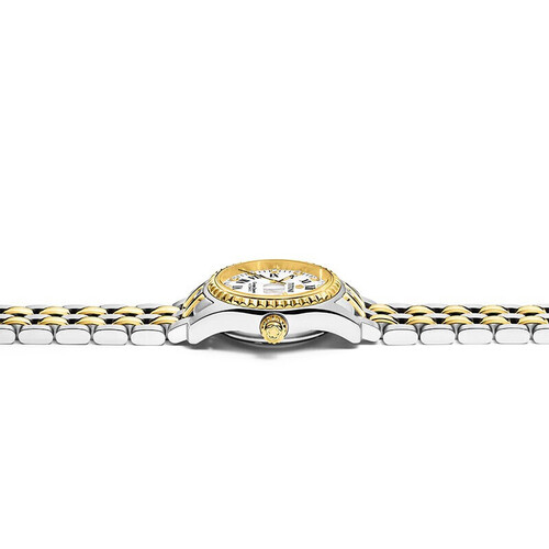采用人工合成蓝宝石玻璃制作的镜面,有着较强的硬度,可抵御日常中的小摩擦。表冠的纹路设计,调节时间更加方便。