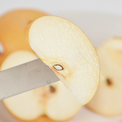 产自河北晋州的秋月梨,北纬37度的黄金生产区,让梨子个个都饱满甜脆,一口咬下去,让你体验到梨汁溢满整个口腔的感觉。