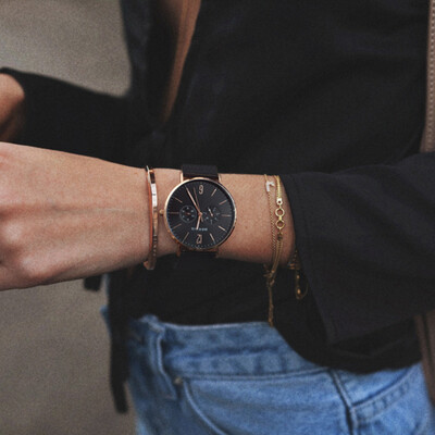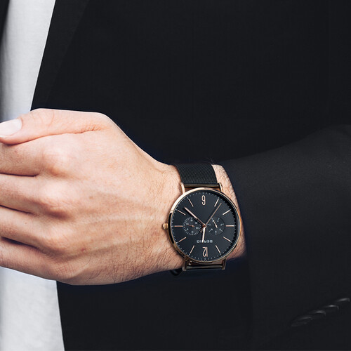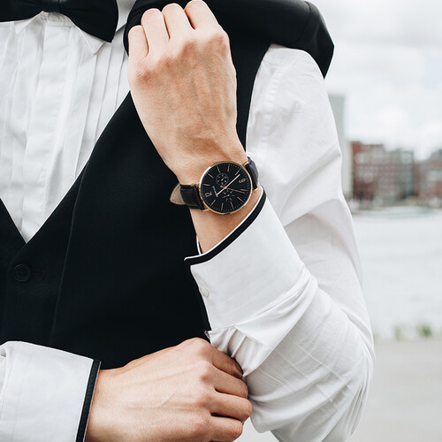 简约的外感搭配夜光显示指针,容易搭配且方便在光线暗的情况下读数。良好的防水特性,遇到下雨天也不用担心。